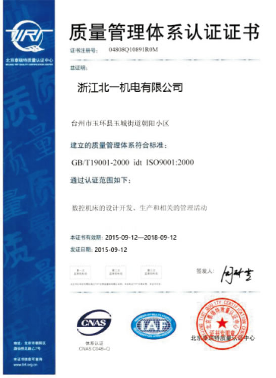 質量管理體係認證證書