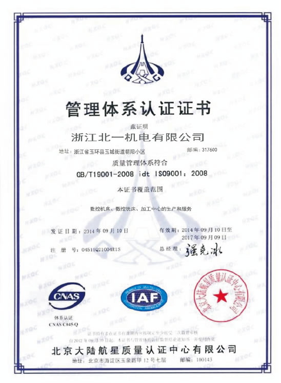 管理體係(xì)認證證書