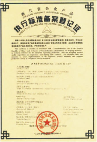 執行標準備案登記證
